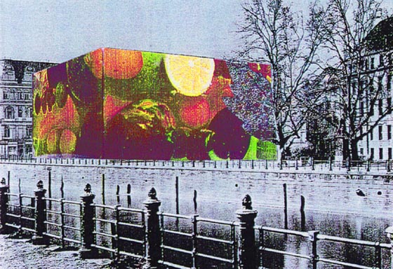 Der Kubus befreit sich aus seiner Isolation, indem er vielfältige Bezüge zur Umgebung entwickelt: So führt vom Schinkelplatz aus eine ansteigende Rampe in das Zentrum des Gebäudes, quer dazu verläuft, in den Boden sich eingrabend, eine Bewegungsrichtung, die zwischen Schloßplatz und Werderschem Markt vermittelt. Weiter oben ist eine "Schinkel-Galerie" auf den Blick zum Alten Museum ausgerichtet. Der Weg durch das Innere des Hauses könnte einem Weg durch eine Gebirgslandschaft ähneln; er führt über Schluchten hinweg in höhlenartige Räume, dann auf Aussichtsplateaus usw.