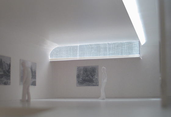 Beim Projekt für das Kunstmuseum Kalmar (2004) entsteht -in Analogie zu einer Serie von Arbeiten Eduardo Chilidas- der Baukörper aus der Auffaltung einer einzigen Fläche. Hier geht es darum, das Verhältnis von offenen und geschlossenen Partien der Fassade neu einzutarieren: In diesem Museumsbau dominiert aus konservatorischen Gründen die geschlossene Außenwand. Umso wichtiger werden die wenigen Öffnungen, die zwischen den geschlossenen Wänden Ausblicke und kontrollierten Tageslichteinfall erlauben.