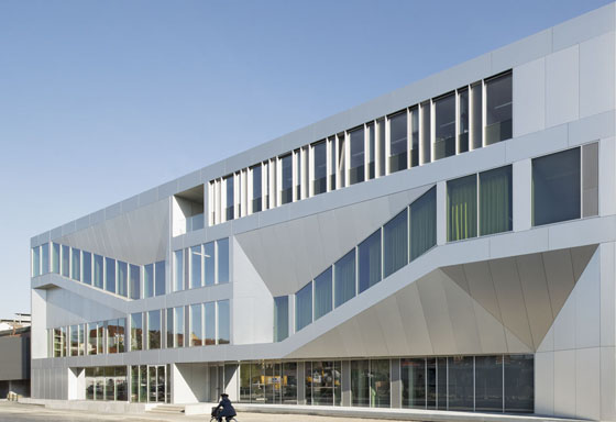 Das Gebäude wird aus mehreren Richtungen erschlossen. Im großzügigen Foyer treffen sich die Wege; die Foyerfläche ist nicht nur Verkehrsfläche, sondern wird auch für Veranstaltungen genutzt. Das Atrium erlaubt Blickverbindungen über alle Geschosse und erleichtert so die Orientierung.