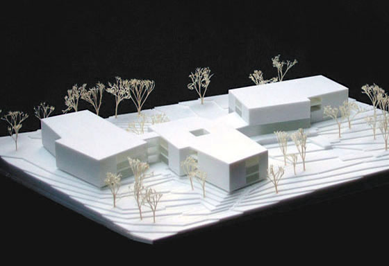 Durch die Wahl eines kompakten Bautyps für die Bewohnertrakte ergibt sich eine differenzierte Baufigur, die das vergleichsweise große Bauvolumen am Ortsrand in ablesbare Einheiten auflöst, und die eine visuelle Durchlässigkeit in Nord-Süd-Richtung des Landschaftsraums aufweist.