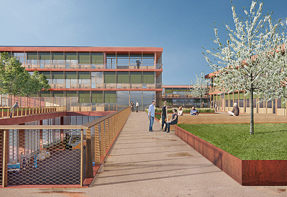 Jede Nutzergruppe erhält einen attraktiven Freibereich. Die Werkstätten öffnen sich zum Werkhof. Patios und Terrassen und Balkonflächen bieten lernraumnahe und differenzierte Aussenraumangebote für alle Nutzergruppen, Lehrer wie Schüler.