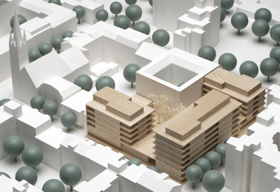 Der Entwurf stellt sich als einfache und prägnante Komposition aus drei rechtwinklig zueinander stehenden kompakten Baukörpern dar. Auf den beiden unteren Geschossen werden diese sockelartig zu einer Randbebauung zusammengefasst. Die städtebauliche Grundhaltung des Entwurfs geht von einer Koexistenz der Bebauungsmuster aus den verschiedenen Zeitschichten (Jahrhundertwende 19./20. Jht, 1960/70er Jahre) aus. Im Übergangsbereich zwischen den unterschiedlichen städtebaulichen Leitbildern folgenden Bebauungen formuliert der Entwurf eine eigenständige Haltung: Zwar arrondiert er den gründerzeitlichen Block; jedoch erlaubt er durch ein gewisses Maß an Öffnung eine bessere Belichtung und Besonnung des Hofs, als es mit einer über alle Geschosse durchgehenden Randbebauung gegeben wäre.