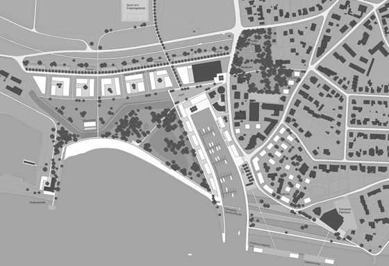 Der Schulauer Hafen gewinnt eine neue Qualität als maritimer Standort durch eine neue räumliche Fassung mit hochwertigen Wohn- und Freizeitnutzungen. Am Hafen entsteht zusammen mit einer maritimen Bebauung eine Sequenz von attraktiven Plätzen, die durch ein Netz von Rundwegen verbunden wird, das zum Flanieren einlädt. Im Sockelgeschoss der neuen, umlaufenden Hafenkante werden auch direkt auf Kaihöhe neue Nutzungen (Gastronomie, Fahrradverleih, Bootsbedarf) angeboten.Der Flutschutz erfolgt für diese Nutzungen über Tore. So entsteht direkt am Hafen eine belebte Promenade.